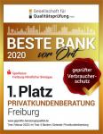 Die Gesellschaft für Qualitätsprüfung mbH in Stuttgart - eine unabhängige Gesellschaft zur Qualitätsmessung in Banken - hat im Jahr 2019 erstmalig die Beratungsqualität von Banken und Sparkassen in Baden-Württemberg auf der Basis der DIN-Norm 77230 zur Sicherung des Verbraucherschutzes durch Testberatungen überprüft und anhand einer umfangreichen Checkliste 5 Bewertungskategorien und 93 Einzel- bzw. über 300 Detailkriterien dokumentiert und ausgewertet. Das Institut führt diesen verbraucherschutzorientierten Bankentest nun jährlich in über 200 Städten bundesweit durch. Die Sparkasse Freiburg-Nördlicher Breisgau konnte bereits 2019 ein sehr erfreuliches Ergebnis erzielen und wurde nun nach dem Test der Privatkundenberatung in sechs Freiburger Instituten im Februar 2020 mit dem Qualitätsurteil „Beste Bank vor Ort“ ausgezeichnet. Ebenfalls ein „Sehr gut“ gab es für die im Zeitraum Januar bis Mai 2020 getestete Baufinanzierungs- und Gewerbekundenberatung.