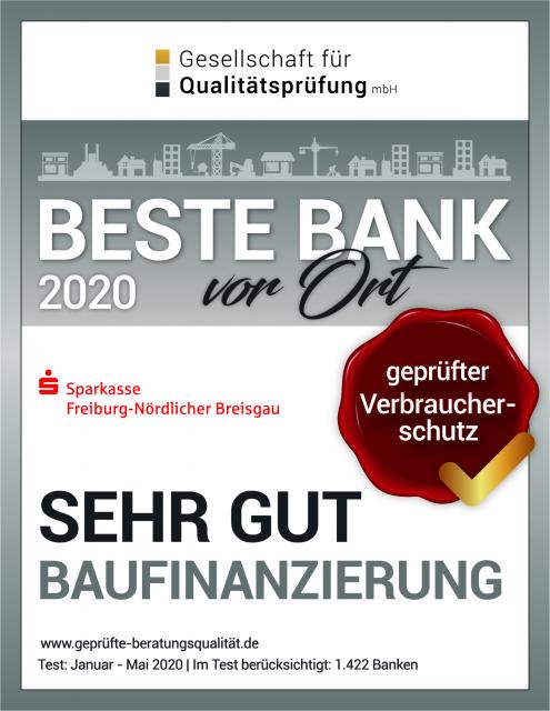 Sparkasse Freiburg - Beste Bank vor Ort - Qailitätssiegel SEHGR GUT für Baufinanzierung.