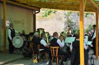 Aber auch auf mehr Nass von Oben waren die Musikanten vorbereitet, denn bereits am Samstag hatten fleißige Hände auf dem Parkplatz vor dem Vereinsheim ein Dach für die Kapellen und Zelte für die Besucher aufgebaut. Von 08:15 bis 18:00 Uhr gab es auf dem zum Festgelände umfunktionierten Platz frisch gezapftes Bier, Steaks und Grillwürste sowie Kaffee und Kuchen und natürlich musikalische Unterhaltung durch die Stadtmusik und die Gastmusikanten vom Bürgerlichen Krankenverein e. V. Und da neben diesen Spezialitäten für Kehle, Gaumen und Gehörgang auch der Wettergott ein Einsehen hatte, war der Hock bis in die Abendstunden gut besucht, und man darf den Stadtmusiker/Innen wünschen, dass so mancher Euro in die Vereinskasse gespült wurde.