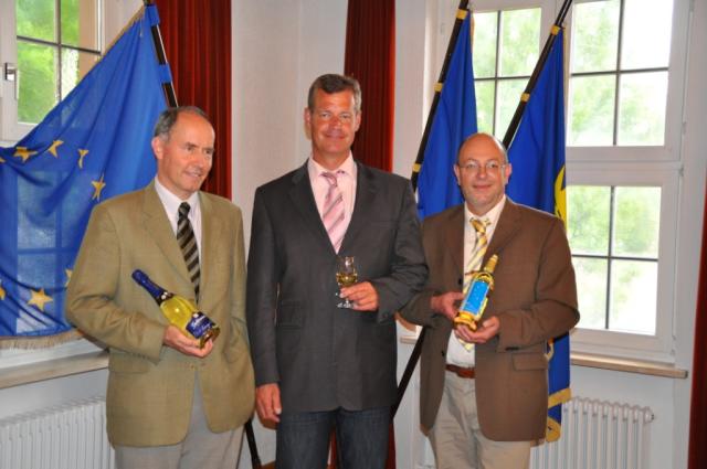 Da sich die Qualität von Wein und Sekt zwar wortreich umschreiben aber am Besten über den Gaumen vermitteln lässt, hatten die Stadt Breisach sowie der Badische Winzerkeller und die Privatkellerei Deutz & Geldermann im Breisacher Rathaus am Montag, den 07. 06. 2010, zur Degustation in den Bürgersaal eingeladen. Hier bot sich den Vertretern/Innen der Presse Gelegenheit, sich von der Qualität der von beiden Häusern anlässlich der „Europatage“ kreierten Sondereditionen „Europa- Wein“ und „Geldermann Europa- Cuvée“ zu überzeugen.