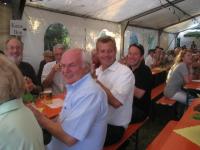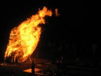 Neben kühlem Bier und warmen Würstchen sorgten ein Mundartdichter und eine Musikkapelle aus Burkheim für Kurzweil und gute Laune unter den Gästen, so dass die Zeit bis zum Entzünden des Sonnwendfeuers wie im Fluge verging. In wenigen Minuten ging dann der Holzstoß in Flammen auf und vertrieb Funken stiebend die Gäste aus den ersten Reihen, die sich aber mit dem Zusammenschrumpfen des Feuers bald wieder füllten. Der einmalige Festplatz mit dem traumhaften Blick auf das Breisacher St. Stephans Münster und die Gastfreundschaft der Schwarzwaldvereinsmitglieder schafften es auch in diesem Jahr wieder, den Besuchern der Sonnwendfeier einen unvergesslichen Abend zu bereiten.