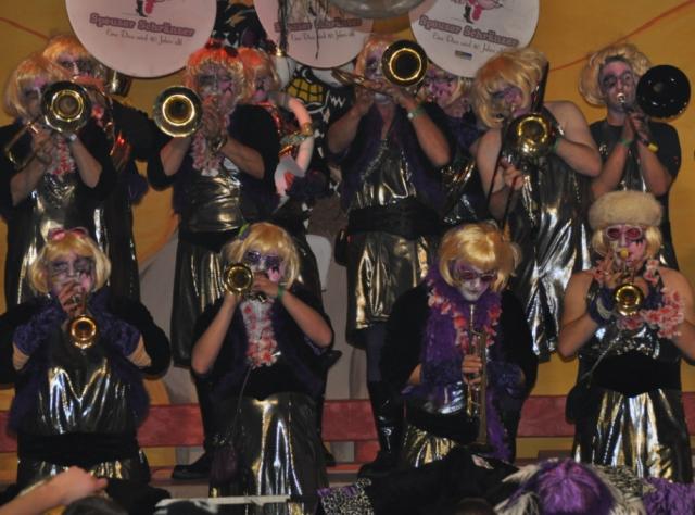 Mit den „Rhy Wehra Schränzer“ aus dem „Wilden Westen“ Öflingen und den „Divas“, den zauberhaften „Speuzer- Schränzern“ aus dem schweizerischen Speuz, bei denen gegen Mitternacht das Blondhaar allerdings schon etwas zerzaust war, nahm der Abend seinen ausgelassenen und vor allem lauten weiteren Verlauf.