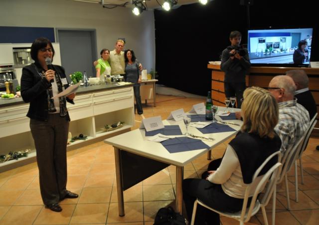 Dann stellte Annette Senn, die auch als Moderatorin der Veranstaltung fungierte, die drei Hobbyköche (m/w) und ihre Gerichte vor. Den Hahn im Korb, Markus Baatz, einen 36jährigen Servicetechniker aus Niederrimsingen, zu dessen Hobbys neben dem Kochen Motorbootfahren zählt. Passend zum Wassersport hatte Markus Baatz, der übrigens schon bei der „ZDF- Küchenschlacht“ am Herd gestanden hatte, Fischfrikadellen mit Limettencreme am Start. Mit Badischen Bandnudeln an Nuss- Orangen- Soße wollte die gebürtige Sizilianerin Elisa Russano punkten. Die Wahlbreisacherin ist neben dem Kochen begeisterte Läuferin und mit diesem Hobby auch im „Lauftreff Breisach“ aktiv. Die Dritte im Bunde, Ulrika Hänssler aus Breisach, plante Sauerkrautreibekuchen mit Lachstartar ohne Spätzle – sehr erstaunlich für eine geborene Stuttgarterin.
