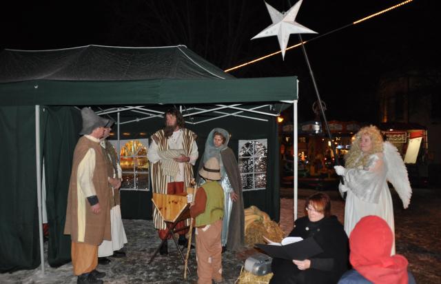 Ein Krippenspiel der etwas anderen Art hatte am Freitag, den 17. Dezember 2010, auf dem Weihnachtsmarkt am Neutorplatz Breisach- Premiere. Mitglieder der Festspiele hatten die Weihnachtsgeschichte zur Geschichte vom „Müden Wirt“ umgestaltet. Der gestresste Gastronom wird vom genervten Griesgram, der Maria und Josef aber immerhin einen Schlafplatz im Stall zur Verfügung stellt, schließlich zum freundlichen und glücklichen Menschen, als er das Christkind in der Krippe sieht. Die gute Stimmung des Wirts wirkte offensichtlich ansteckend, da beim Singen schließlich auch die Zuschauer mit einstimmten. Auch die echte Gastronomin und Weihnachtsmarkt- Organisatorin Iris Diodone war begeistert und ergriffen von der Vorführung der Festspieler/Innen rund um Regisseurin und Erzählerin Patricia Kaiser.