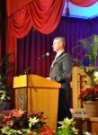 überlebenden Weihnachtssternen freundlich umwucherte Rednerpult. Im Namen von Gemeinderat, Ortsvorstehern und Ortschaftsräten dankte Menges allen, die sich im vergangenen Jahr um das Gemeinwesen verdient gemacht hatten. Sie alle, so Menges, „helfen ohne großes Tara zum VG (Vergelt´ s Gott)- Tarif.“ Insbesondere dankte der Stellvertreter Bürgermeister Oliver Rein und seiner Frau Petra.