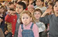 Musik zwischen Bücherregalen: Trio RATZFATZ bespasst Breisacher KIGA- Kinder (Bild: J. W. Steckmeister)