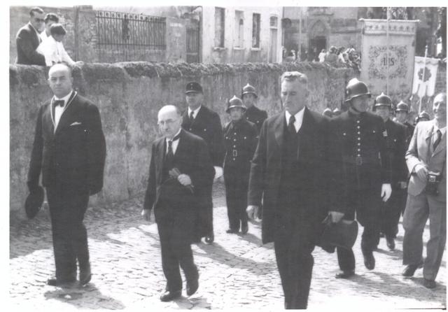 Stadtpatrozinium anno 1949: Staatspräsident Leo Wohleb (2.v.l.) beim Anstieg auf den Münsterberg (Bild: Stadtarchiv Breisach)