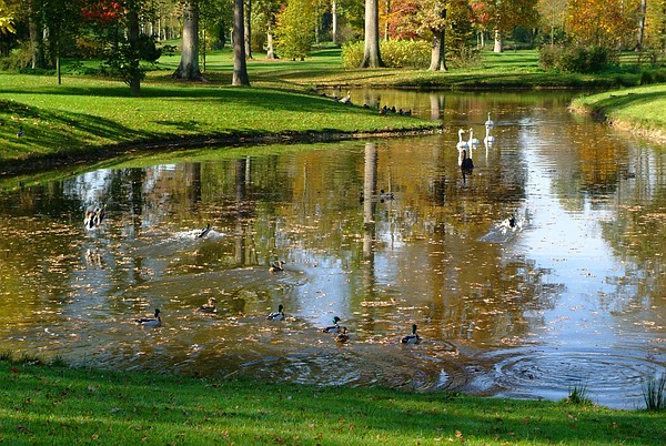 Die Bäume im Queen-Auguste-Victoria-Park im Spiegel des Wassers