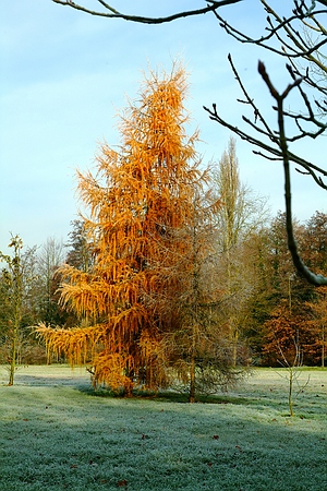 Noch hat die Lärche im Queen-Auguste-Victoria-Park nicht alle orange gefärbten Nadeln abgeworfen