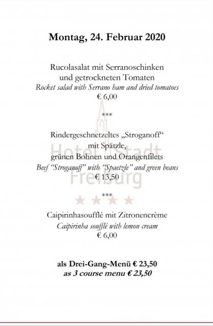 Montag: 3-Gang-Tagesmenü von Spitzenkoch Matthias Dahlinger für EURO 23,50 im Hotel Stadt Freiburg
