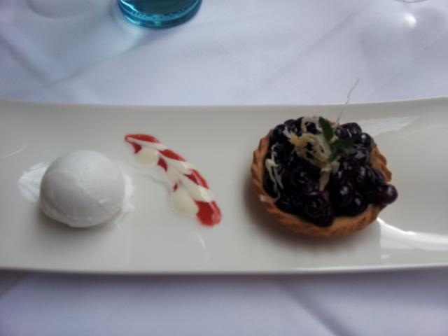 Begyn's süße Verführung im Steinbuck: Lauwarmes Heidelbeerküchlein mit Holundersorbet für 6 EURO.