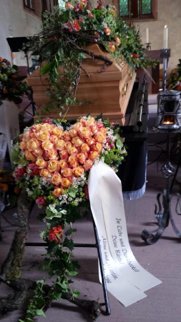 Blumen-Herz zum Abschied mit Liebe für Bernhard Huber: Von seiner Frau und seinen Kindern.