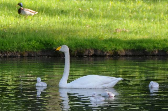 Singschwan-Orchester: Vier junge Singschwäne in Umkirchs Queen-Auguste-Victoria-Park!  6354  18.05.2012
