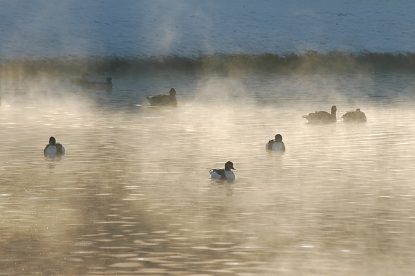 Im Nebel des Morgengrauens: Wildenten im Fulwellpark
