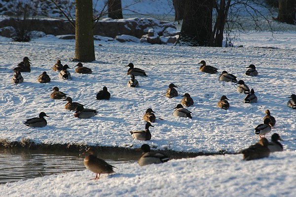 Sie kommen so zahlreich weil sie sich hier wohl fühlen: Wildenten im Fulwellpark
