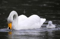 Schwanengeburt: Vier junge Singschwäne in Umkirchs Queen-Auguste-Victoria-Park (Bild: Regionalia)