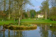 Gartenkunst im Queen-Auguste-Victoria-Park: Die Insel im Weiher und das Schloss im Spiegel des Wassers (Bild: Regionalia) |
