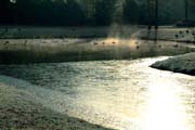 Eine kleine Schwimmfläche der Schwäne ist eisfrei gelieben: Queen-Auguste-Victoria-Park im Winter (Bild: Regionalia) |