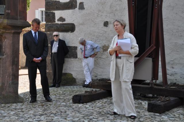 Die Erinnerungsarbeit in Breisach ist sehr kostbar, betonte Minia Joneck von der jüdischen Gemeinde in Konstanz. Ohne derartige private Initiativen könnten die jüdischen Gemeinden allein die Erinnerungsarbeit nicht leisten, sagte Frau Joneck im Namen der mittlerweile wieder 10 jüdischen Gemeinden in Baden.