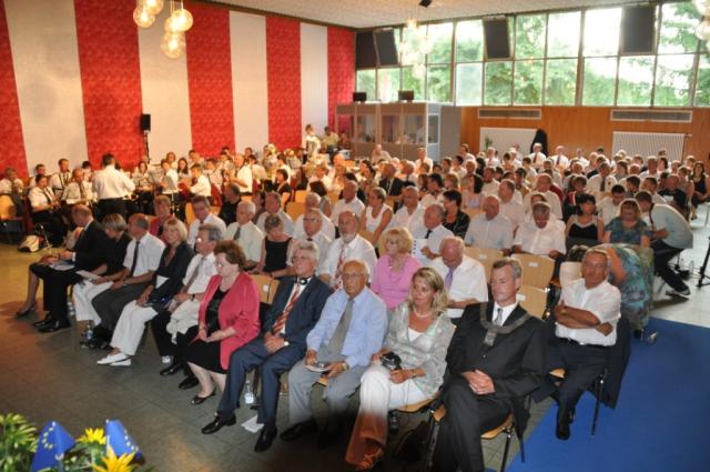 Mit einem großen Festakt wurden am Freitag, den 10. Juli 2010, die Breisacher Europatage eröffnet. In der gefühlt 100° heißen Stadthalle hatten sich zahlreiche Ehrengäste zusammengefunden, um gemeinsam Breisachs Städtepartnerschaften und den 60. Jahrestag der Europaabstimmung zu feiern. Die Veranstaltung war zugleich Auftakt des großen Festwochenendes, an dem unter anderem bei zahlreichen Ausstellungen und Aktionen das historische Ereignis des Jahres 1950, das Thema Europa sowie die Partnerschaftsjubiläen mit den elsässischen Gemeinden Saint Louis und Neuf- Brisach und der polnischen Stadt Oswiecim im Mittelpunkt stehen.