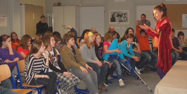 Sechs fünfte Klassen nahmen an der Aufführung teil. Konzentriert lauschten über 160 Schüler und Schülerinnen der Erzählerin und verließen nach knapp eineinhalb Stunden begeistert den Saal.