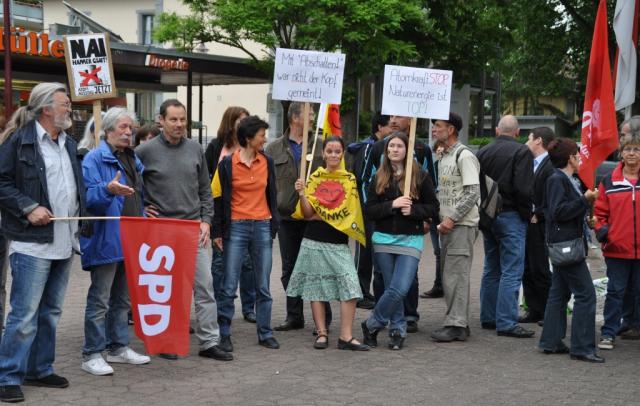 Besuch von französischen Atomkraftgegnern/Innen hatte am Montag, den 16. Mai 2011, die wöchentliche Mahnwache auf dem Neutorplatz. Mitglieder der elsässischen Anti- AKW- Bewegung „Stop Fessenheim“ waren nach Breisach gekommen, um ihre Solidarität mit den deutschen Nachbarn/Innen zu bekunden. Neben einer täglichen Protestversammlung auf dem Champs de Mars in Colmar veranstalten rund 100 Personen ein Staffelfasten gegen Atomstrom. Pierre Rosenzweig ist einer von ihnen.