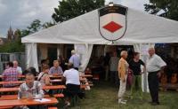 Gästebegrüßung vor dem Zelt: Erste Vorsitzende Konrad Herzig und Else Voigt (v.r.) (Bild: J. W. Steckmeister)