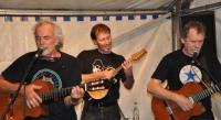Während sich die Festgesellschaft noch mit Speisen und Getränken versorgte, begannen die „Goschehobel“, die sich seit fast einem Vierteljahrhundert der Musik in Mundart verschrieben haben, mit dem musikalischen Abendprogramm, das über kurz oder lang alle nassen und trockenen Füße zum Mitwippen brachte. Zwischen den einzelnen Regenschauern wischten fleißige Hände auch die Sitzbänke im Außenbereich unermüdlich wieder trocken, so dass vorm und im Zelt ein ständiges, witterungsbedingtes Kommen und Gehen herrschte. Viel zu rasch waren die Schnitzelbrötchen ausverkauft und ein schöner, stimmungsvoller Festabend zu Ende gegangen. Alle Anwesenden freuen sich mit Sicherheit schon auf das 30. Sonnenwendfest im nächsten Jahr. Vielleicht dann auch wieder ohne Regen!
