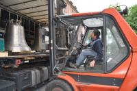 Präzision und gute Nerven: Staplerfahrer Norbert Rheinhold beim Glockenabladen (Bild: J. W. Steckmeister)