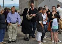 Große Glocke, kleine Fans: Kinder bestaunen die Christusglocke bei ihrer "Zwischenlandung" (Bild: J. W. Steckmeister)