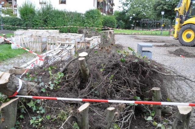 Wo gehobelt wird... Buchenheckenstümpfe mit Flatterband