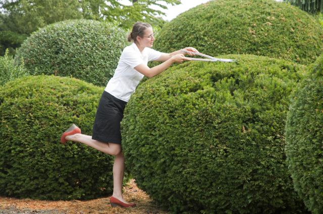 Buchsbaumzünsler zündet am grünen Locken-Kopf: Der Buchsbaum beim Friseur.