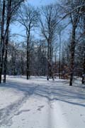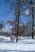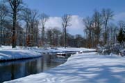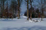 Zwei Spuren im Schnee führen durch den Queen-Auguste-Victoria-Park zum Schloss (Bild: Regionalia)