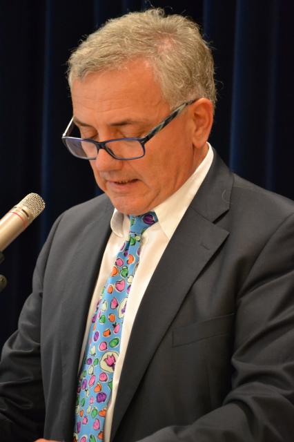 Leviten-Lesung nicht nach Levi, sondern nach Theis? Die bunte Krawatte ist Ausdruck seines farbenfrohen Geistes: Alfons Theis (Umkirch) spricht zum Abschied humorvoll zu Vorgesetzten und Untergebenen.