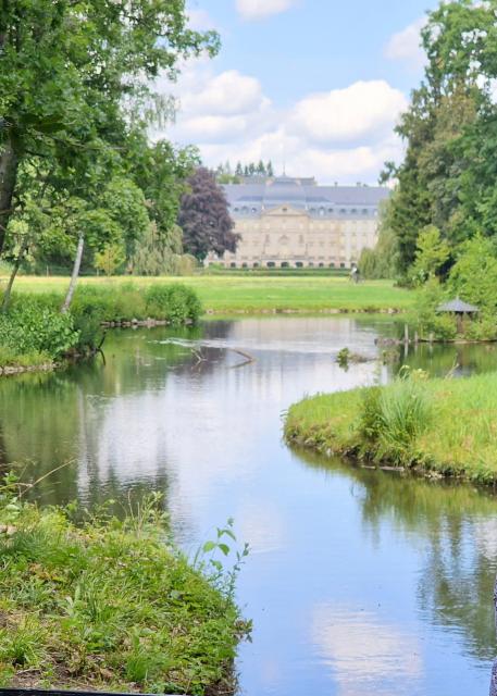 Blick durch den Schlosspark von Donaueschingen auf das fürstliche Schloss