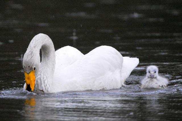 Schwanengeburt: Vier junge Singschwäne in Umkirchs Queen-Auguste-Victoria-Park